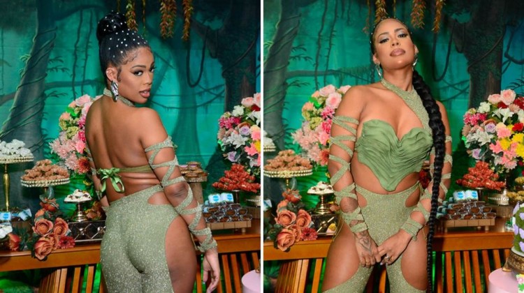 Para a ocasião, Marvvila apostou em um look monocromático verde todo brilhoso, com um conjunto de cropped e legging recortada. O visual, inclusive, é todo inspirado no clipe do seu último lançamento, a música "#Sextei", lançado no dia 28 de abril.